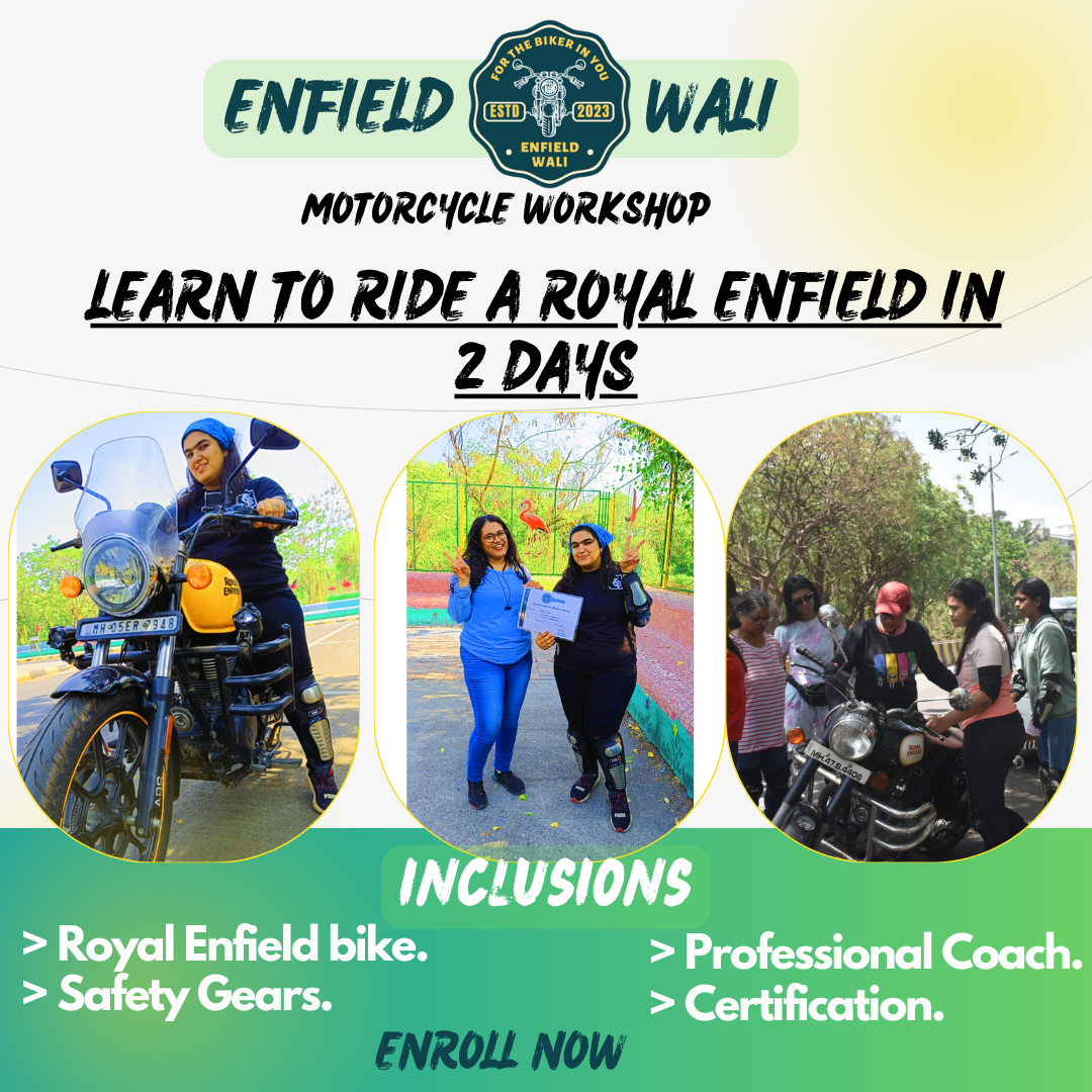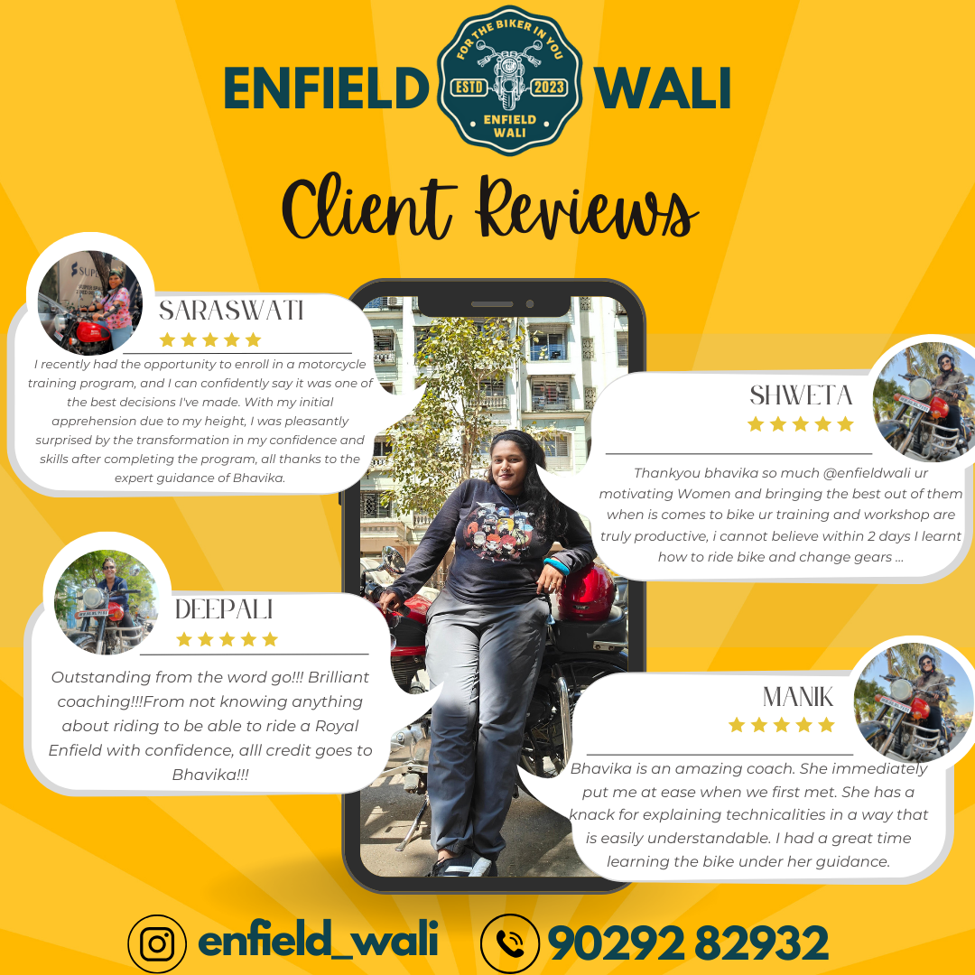 I’m Bhavika Mistry, popularly known as “Enfield Wali”, a passionate bike trainer based in Mumbai. For the past 4 years, I’ve been teaching beginners and enthusiasts how to ride with confidence, control, and a fearless mindset. What started as my personal love for Royal Enfields soon turned into a mission—to help more people, especially women, break barriers and enjoy the freedom of riding. Through my sessions, I train learners in both Hindi and English, making the experience comfortable, friendly, and easy to follow for everyone. My teaching style is calm, supportive, and safety-focused. Whether it’s your first time touching a bike or you’re looking to polish your riding skills, I make sure you learn step-by-step, gain real road confidence, and truly enjoy the process. Riding is not just a skill—it’s an empowering experience. And through Enfield Wali, I’m here to help you feel that power, freedom, and thrill on the road.
